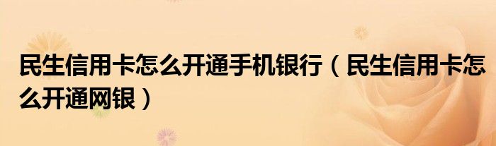 大家好,综合小编来为大家讲解下。民生信用卡怎么开通手机银行,民生信用卡怎么开通网银这个很多人还不知道,现在让我们一起来看看吧!