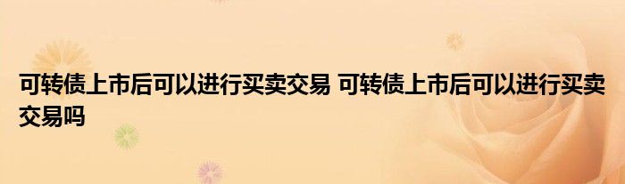 导读 大家好,小元来为大家解答问题。可转债上市后可以进行买卖交易,可转债上市后可以进行买卖交易吗,这个很多人还不知道,现在让我们一起来了