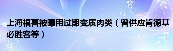 大家好,综合小编来为大家讲解下。上海福喜被曝用过期变质肉类,曾供应肯德基必胜客等这个很多人还不知道,现在让我们一起来看看吧!