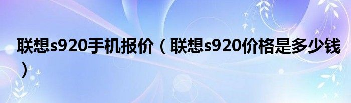 大家好,综合小编来为大家讲解下。联想s920手机报价,联想s920价格是多少钱这个很多人还不知道,现在让我们一起来看看吧!