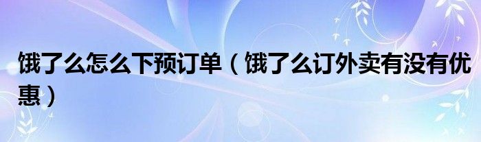 大家好,综合小编来为大家讲解下。饿了么怎么下预订单,饿了么订外卖有没有优惠这个很多人还不知道,现在让我们一起来看看吧!