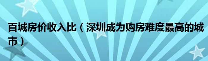 大家好,综合小编来为大家讲解下。百城房价收入比,深圳成为购房难度最高的城市这个很多人还不知道,现在让我们一起来看看吧!