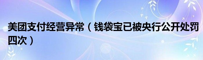 大家好,综合小编来为大家讲解下。美团支付经营异常,钱袋宝已被央行公开处罚四次这个很多人还不知道,现在让我们一起来看看吧!