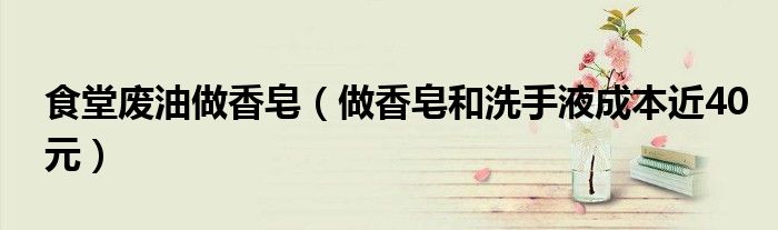 大家好,综合小编来为大家讲解下。食堂废油做香皂,做香皂和洗手液成本近40元这个很多人还不知道,现在让我们一起来看看吧!