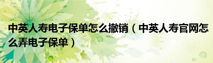 大家好,综合小编来为大家讲解下。中英人寿电子保单怎么撤销,中英人寿官网怎么弄电子保单这个很多人还不知道,现在让我们一起来看看吧!