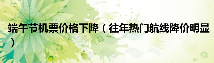 导读 大家好,综合小编来为大家讲解下。端午节机票价格下降,往年热门航线降价明显这个很多人还不知道,现在让我们一起来看看吧!1、不得不说,一
