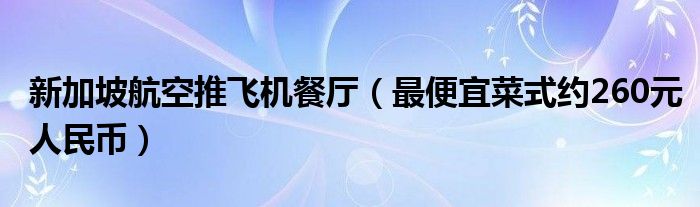大家好,综合小编来为大家讲解下。新加坡航空推飞机餐厅,最便宜菜式约260元人民币这个很多人还不知道,现在让我们一起来看看吧!