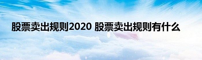 导读 大家好,小元来为大家解答问题。股票卖出规则2020,股票卖出规则有什么这个很多人还不知道,现在让我们一起来了解下吧!