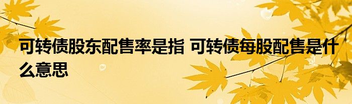 导读 大家好,小元来为大家解答问题。可转债股东配售率是指,可转债每股配售是什么意思,这个很多人还不知道,现在让我们一起来了解下吧!
