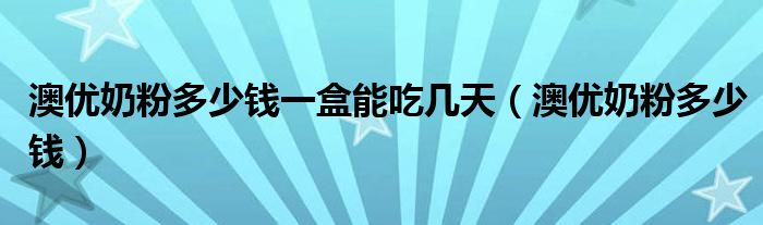 大家好,综合小编来为大家讲解下。澳优奶粉多少钱一盒能吃几天,澳优奶粉多少钱这个很多人还不知道,现在让我们一起来看看吧!