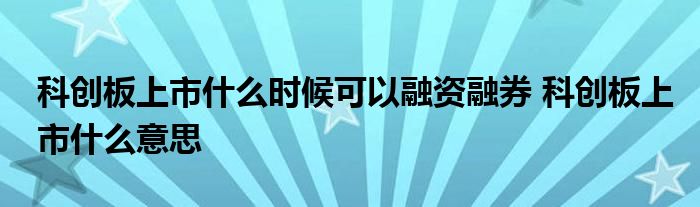 导读 大家好,小元来为大家解答问题。科创板上市什么时候可以融资融券,科创板上市什么意思,这个很多人还不知道,现在让我们一起来了解下吧!