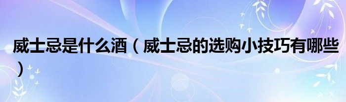 导读 大家好,综合小编来为大家讲解下。威士忌是什么酒,威士忌的选购小技巧有哪些这个很多人还不知道,现在让我们一起来看看吧!1、对于威士忌这