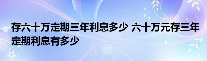 导读 大家好,小呗来为大家解答以上的问题存六十万定期三年利息多少,六十万元存三年定期利息有多少这个很多人还不知道,现在让我们一起来了解下吧