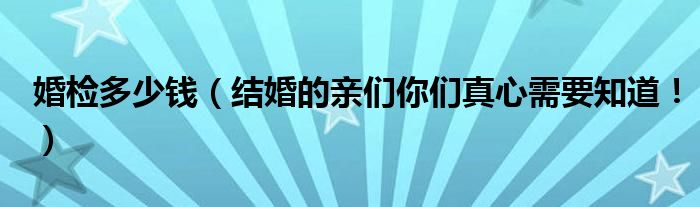 大家好,综合小编来为大家讲解下。婚检多少钱,结婚的亲们你们真心需要知道!这个很多人还不知道,现在让我们一起来看看吧!