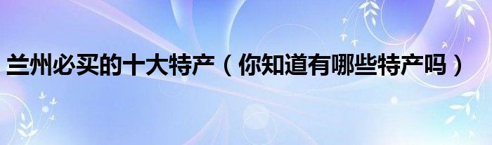 3、其实现在许多人外出旅游都会选择带当地的特产回家给亲朋好友品尝的,但是现在,不少人计划前往兰州旅游的,不过购买当地特产也是必不可少的旅行计划之一。那么,你知道兰州必买的十大特产有哪些?通过以上介绍,你应该清楚了吧!