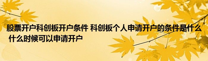 导读 大家好,小元来为大家解答问题。股票开户科创板开户条件,科创板个人申请开户的条件是什么,什么时候可以申请开户,这个很多人还不知道,现