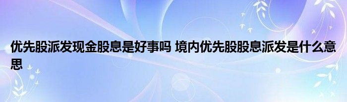 导读 大家好,小元来为大家解答问题。优先股派发现金股息是好事吗,境内优先股股息派发是什么意思,这个很多人还不知道,现在让我们一起来了解下