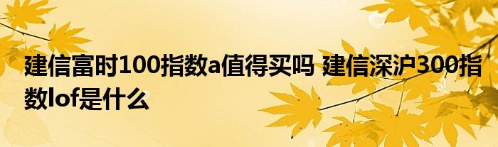 导读 大家好,小元来为大家解答问题。建信富时100指数a值得买吗,建信深沪300指数lof是什么,这个很多人还不知道,现在让我们一起来了解下吧!