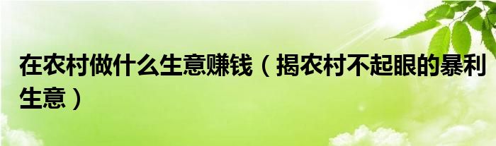 大家好,综合小编来为大家讲解下。在农村做什么生意赚钱,揭农村不起眼的暴利生意这个很多人还不知道,现在让我们一起来看看吧!
