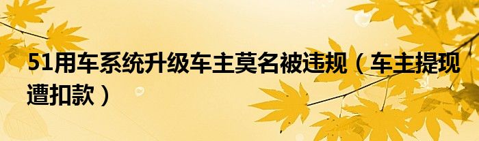 大家好,综合小编来为大家讲解下。51用车系统升级车主莫名被违规,车主提现遭扣款这个很多人还不知道,现在让我们一起来看看吧!