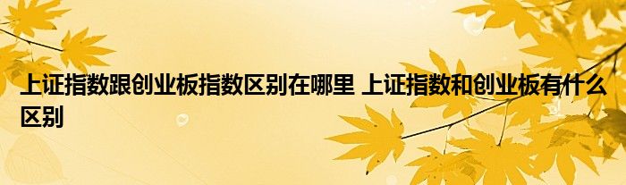 导读 大家好,小元来为大家解答问题。上证指数跟创业板指数区别在哪里,上证指数和创业板有什么区别,这个很多人还不知道,现在让我们一起来了解