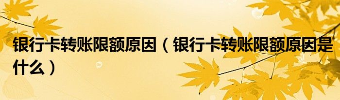 大家好,综合小编来为大家讲解下。银行卡转账限额原因,银行卡转账限额原因是什么这个很多人还不知道,现在让我们一起来看看吧!