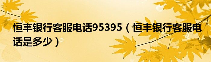 大家好,综合小编来为大家讲解下。恒丰银行客服电话95395,恒丰银行客服电话是多少这个很多人还不知道,现在让我们一起来看看吧!