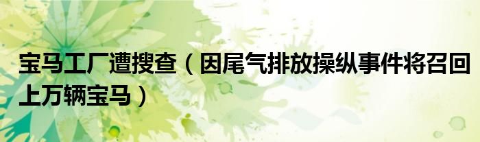 大家好,综合小编来为大家讲解下。宝马工厂遭搜查,因尾气排放操纵事件将召回上万辆宝马这个很多人还不知道,现在让我们一起来看看吧!