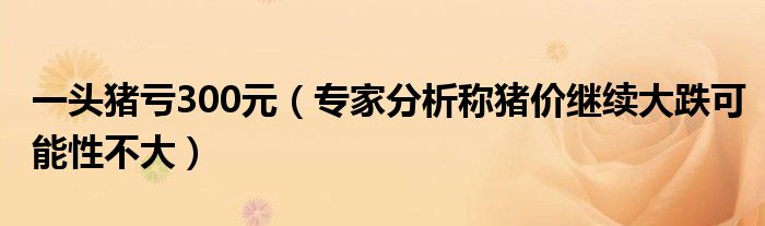 大家好,综合小编来为大家讲解下。一头猪亏300元,专家分析称猪价继续大跌可能性不大这个很多人还不知道,现在让我们一起来看看吧!