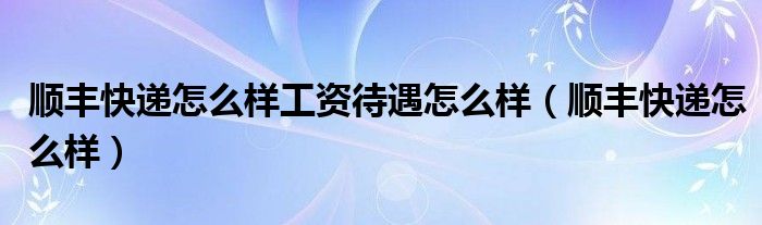 大家好,综合小编来为大家讲解下。顺丰快递怎么样工资待遇怎么样,顺丰快递怎么样这个很多人还不知道,现在让我们一起来看看吧!