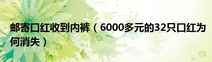 大家好,综合小编来为大家讲解下。邮寄口红收到内裤,6000多元的32只口红为何消失这个很多人还不知道,现在让我们一起来看看吧!