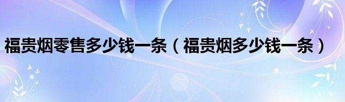 大家好,综合小编来为大家讲解下。福贵烟零售多少钱一条,福贵烟多少钱一条这个很多人还不知道,现在让我们一起来看看吧!