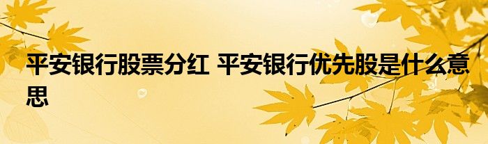 导读 大家好,小元来为大家解答问题。平安银行股票分红,平安银行优先股是什么意思,这个很多人还不知道,现在让我们一起来了解下吧!