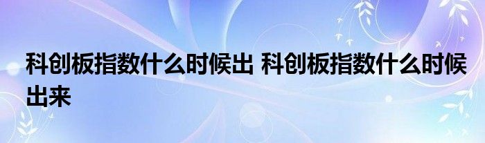 导读 大家好,小元来为大家解答问题。科创板指数什么时候出,科创板指数什么时候出来这个很多人还不知道,现在让我们一起来了解下吧!