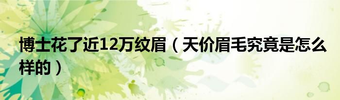 导读 大家好,综合小编来为大家讲解下。博士花了近12万纹眉,天价眉毛究竟是怎么样的这个很多人还不知道,现在让我们一起来看看吧!对于纹眉,其实