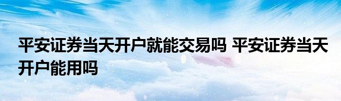 导读 大家好,小元来为大家解答问题。平安证券当天开户就能交易吗,平安证券当天开户能用吗,这个很多人还不知道,现在让我们一起来了解下吧!