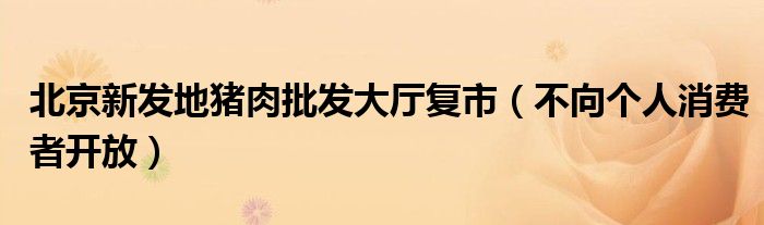 大家好,综合小编来为大家讲解下。北京新发地猪肉批发大厅复市,不向个人消费者开放这个很多人还不知道,现在让我们一起来看看吧!