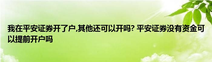 大家好,小元来为大家解答问题。我在平安证券开了户,其他还可以开吗?,平安证券没有资金可以提前开户吗,这个很多人还不知道,现在让我们一起来了解下吧!