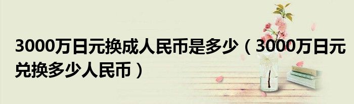 导读 大家好,综合小编来为大家讲解下。3000万日元换成人民币是多少,3000万日元兑换多少人民币这个很多人还不知道,现在让我们一起来看看吧!1、