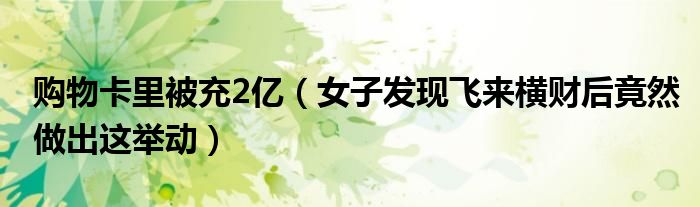 大家好,综合小编来为大家讲解下。购物卡里被充2亿,女子发现飞来横财后竟然做出这举动这个很多人还不知道,现在让我们一起来看看吧!