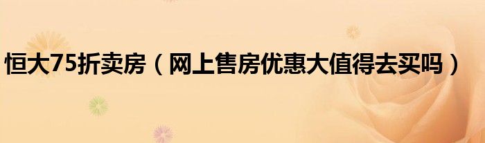 大家好,综合小编来为大家讲解下。恒大75折卖房,网上售房优惠大值得去买吗这个很多人还不知道,现在让我们一起来看看吧!