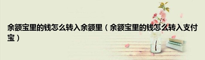 导读 大家好,综合小编来为大家讲解下。余额宝里的钱怎么转入余额里,余额宝里的钱怎么转入支付宝这个很多人还不知道,现在让我们一起来看看吧!1