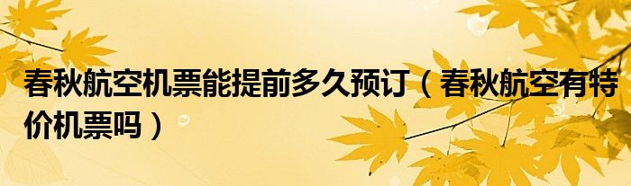 导读 大家好,综合小编来为大家讲解下。春秋航空机票能提前多久预订,春秋航空有特价机票吗这个很多人还不知道,现在让我们一起来看看吧!1、这些