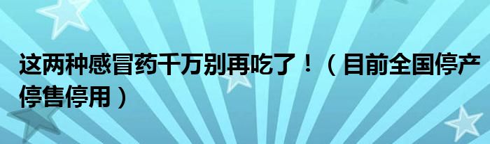 大家好,综合小编来为大家讲解下。这两种感冒药千万别再吃了!,目前全国停产停售停用这个很多人还不知道,现在让我们一起来看看吧!