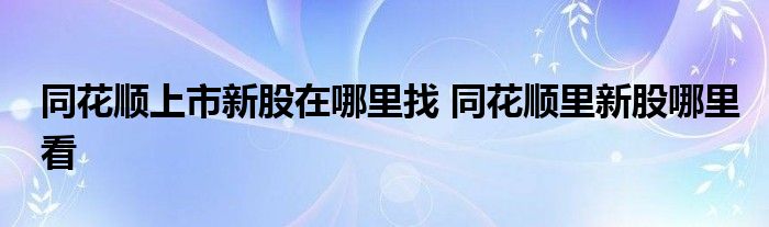 导读 大家好,小元来为大家解答问题。同花顺上市新股在哪里找,同花顺里新股哪里看,这个很多人还不知道,现在让我们一起来了解下吧!