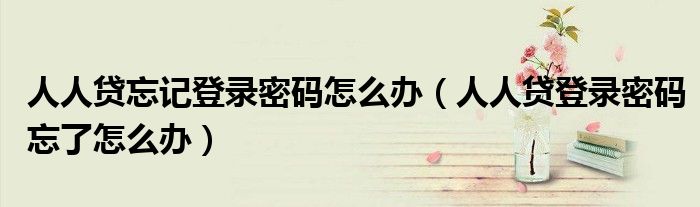 大家好,综合小编来为大家讲解下。人人贷忘记登录密码怎么办,人人贷登录密码忘了怎么办这个很多人还不知道,现在让我们一起来看看吧!