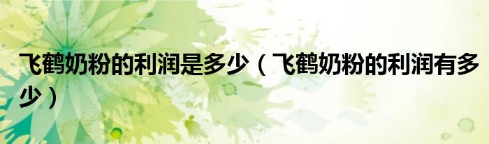 导读 大家好,综合小编来为大家讲解下。飞鹤奶粉的利润是多少,飞鹤奶粉的利润有多少这个很多人还不知道,现在让我们一起来看看吧!飞鹤奶粉加盟的