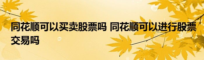 大家好,小元来为大家解答问题。同花顺可以买卖股票吗,同花顺可以进行股票交易吗,这个很多人还不知道,现在让我们一起来了解下吧!