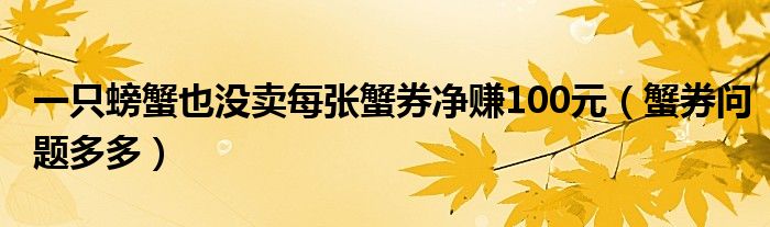 大家好,综合小编来为大家讲解下。一只螃蟹也没卖每张蟹券净赚100元,蟹券问题多多这个很多人还不知道,现在让我们一起来看看吧!