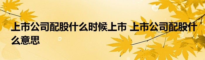导读 大家好,小元来为大家解答问题。上市公司配股什么时候上市,上市公司配股什么意思,这个很多人还不知道,现在让我们一起来了解下吧!